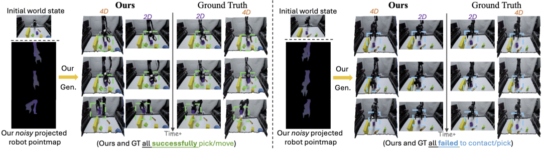 实考评释,Kinema4D不仅能跨越编造与现实的领域,更展现了强盛的零样本泛化才能。它为构建高保真、可限度化膨胀的具身智能进修场,铺就了一条全新的4D通途。
