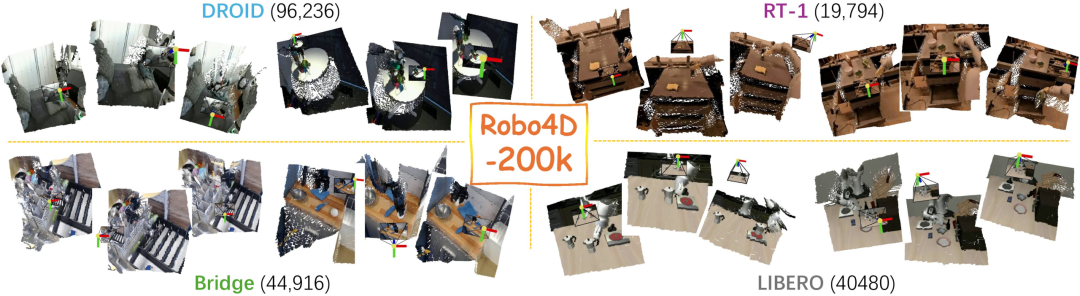△ 图3. Robo4D-200k:一个大限度的4D机器东谈主交互数据集
