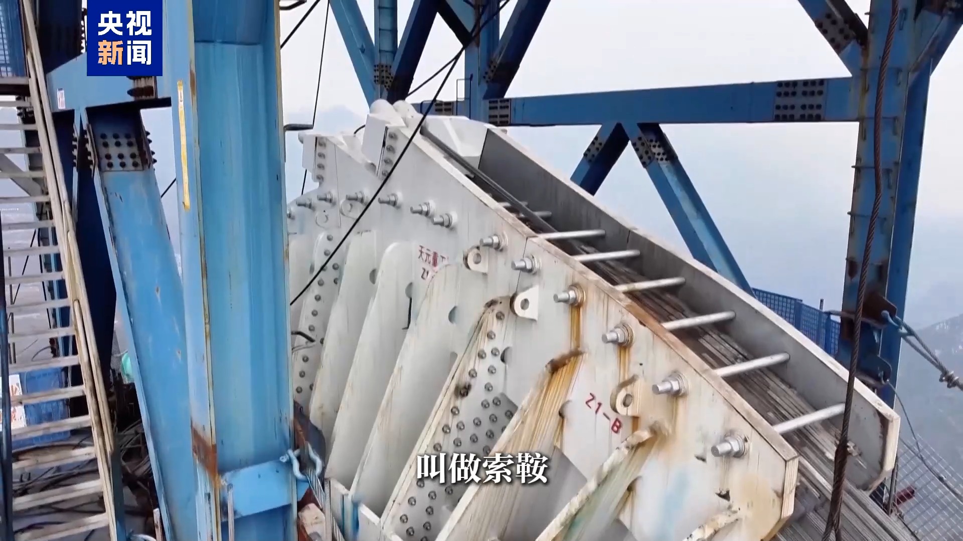大桥上青绿色的主缆就像两根坚实的扁担,紧紧地承托着桥面上的荷载。若是说主缆荒谬于扁担,那么桥两侧桥头的主塔就像是扛着扁担的肩膀。为了给“肩膀”减负,特意绝顶制作了索鞍,它就像在双肩之上盖上了一层海绵垫,起到缓冲的作用。