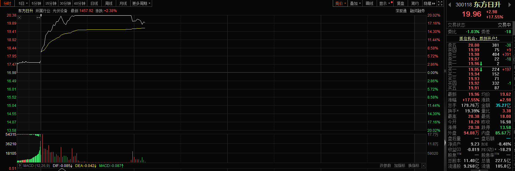 上证报中国证券网讯1月12日早盘,天际光伏办法股再度活跃,东方日升一度20CM涨停,死心10时36分,东方日升涨超17%。